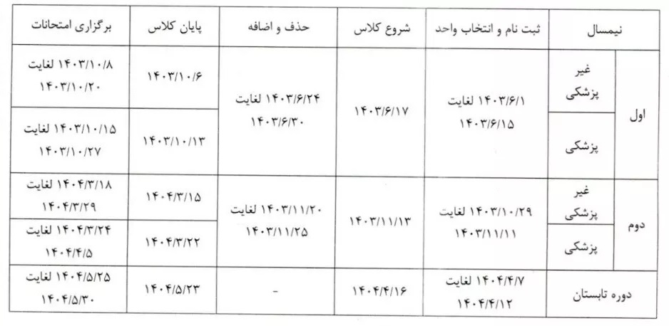 دانشگاه آزاد اسلامی تقویم آموزشی سال تحصیلی ۱۴۰۴ ـ ۱۴۰۳ را اعلام کرد