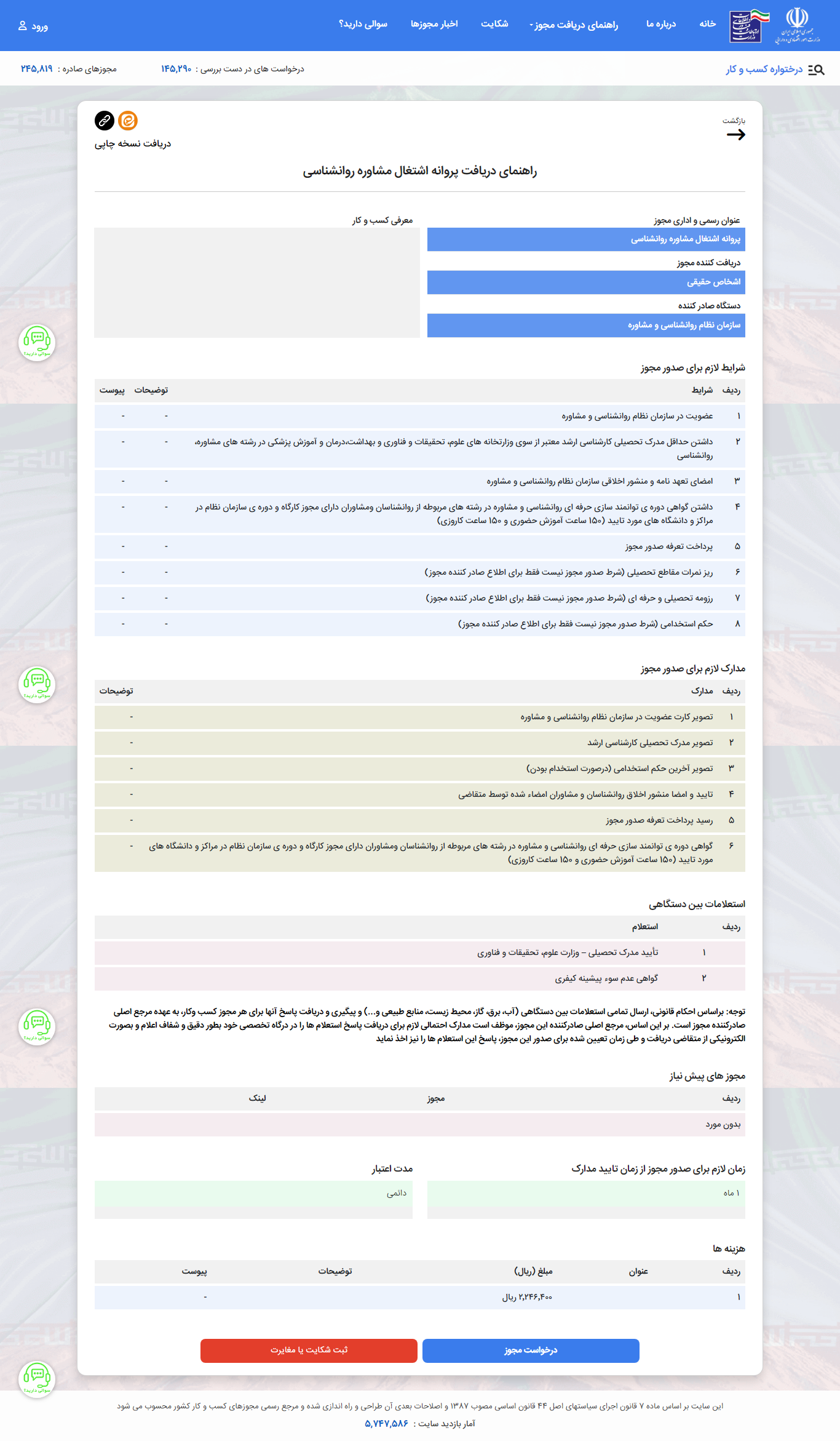 به گزارش روابط عمومی واحد الکترونیکی دانشگاه آزاد اسلامی، کلیه اعضای سازمان نظام روانشناسی و مشاوره جمهوری اسلامی میتوانند با ورود به درگاه ملی مجوزها به آدرس g4b.ir درخواست صدور پروانه صنفی کنند. فارغالتحصیلان میتوانند برای اخذ پروانه اشتغال مشاوره/روانشناسی طبق جدول پیوست ۱، برای اخذ مجوز مرکز مشاوره روانسنجی طبق پیوست ۲ و برای مشاوره سالمندان طبق پیوست ۳ اقدام کنند.